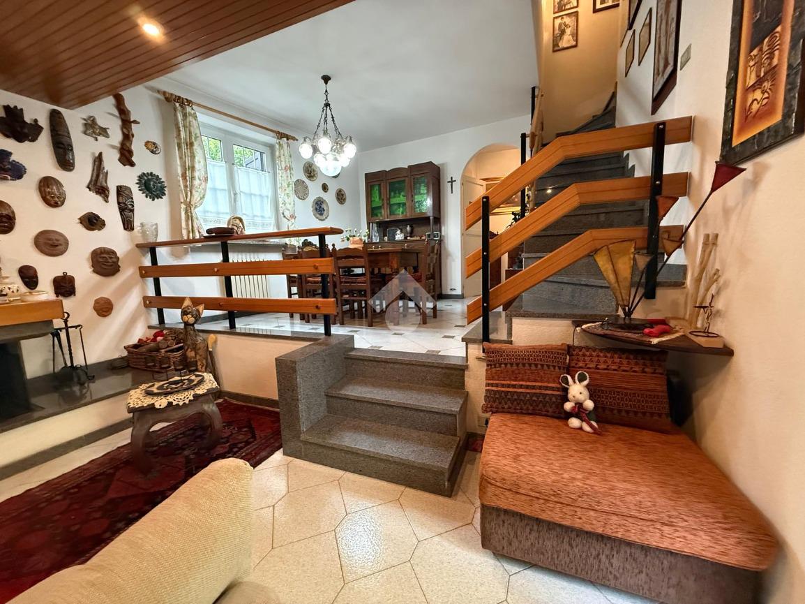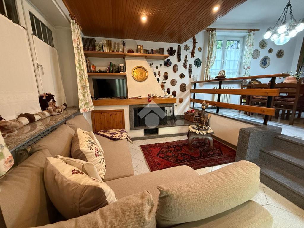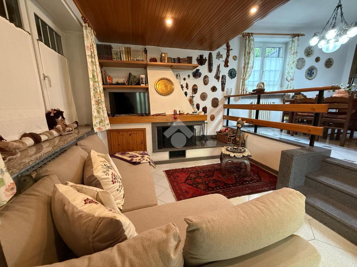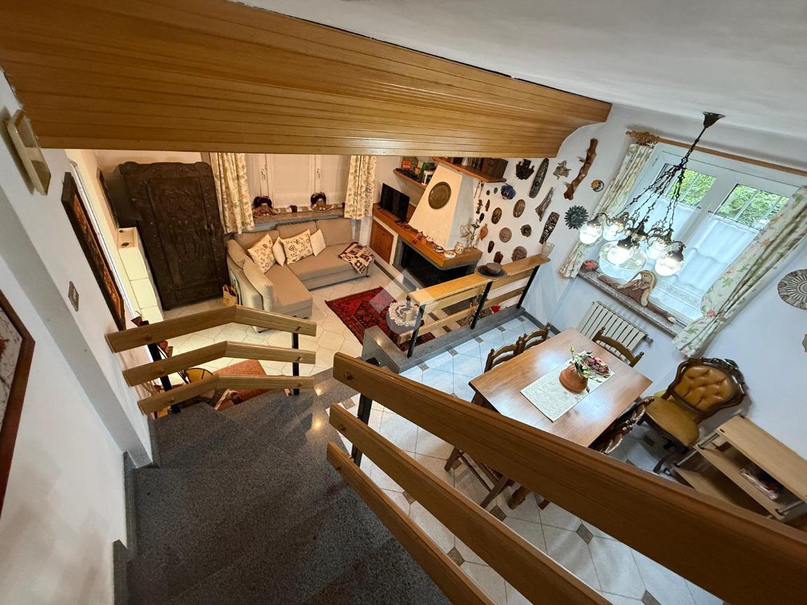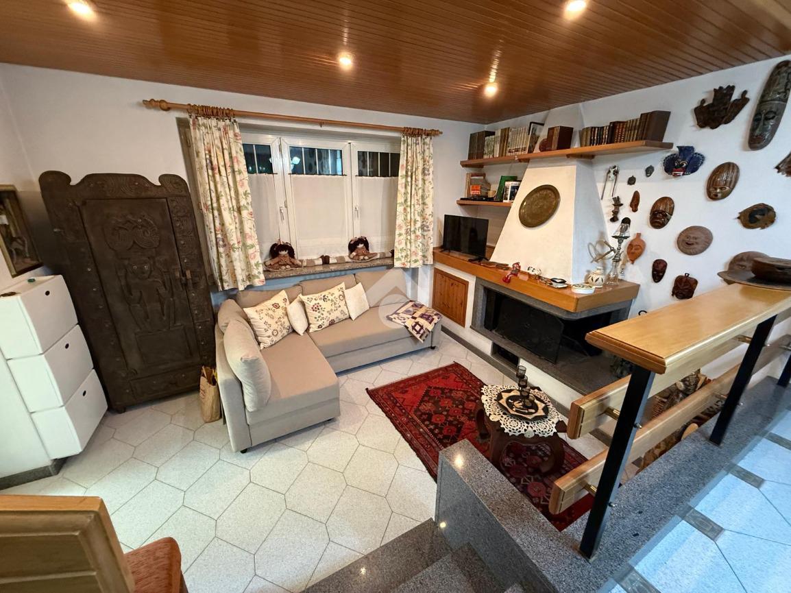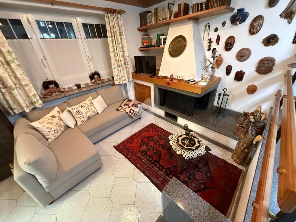 L'ingresso avviene direttamente sul salotto con camino.