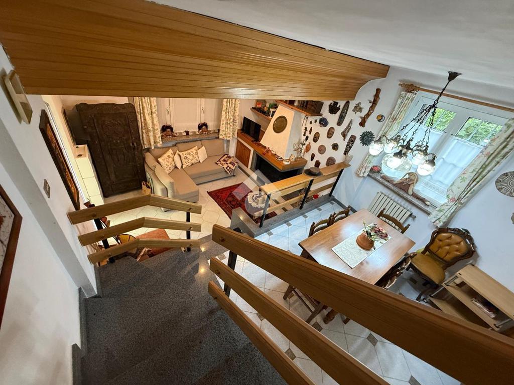 Alcuni gradini conducono alla sala pranzo e al bagno di servizio.