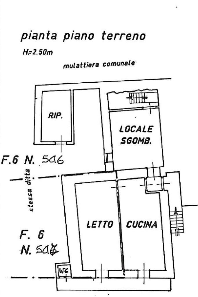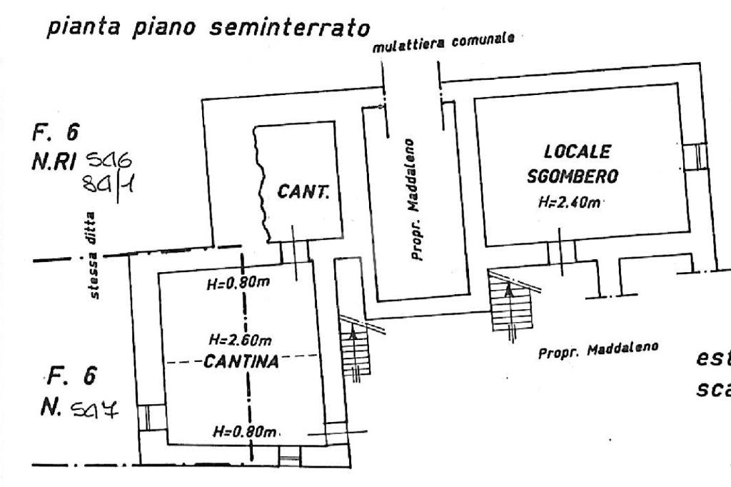 L'immobile è caratterizzato da un piano terreno con un locale uso deposito con volte con mattoni a vista.