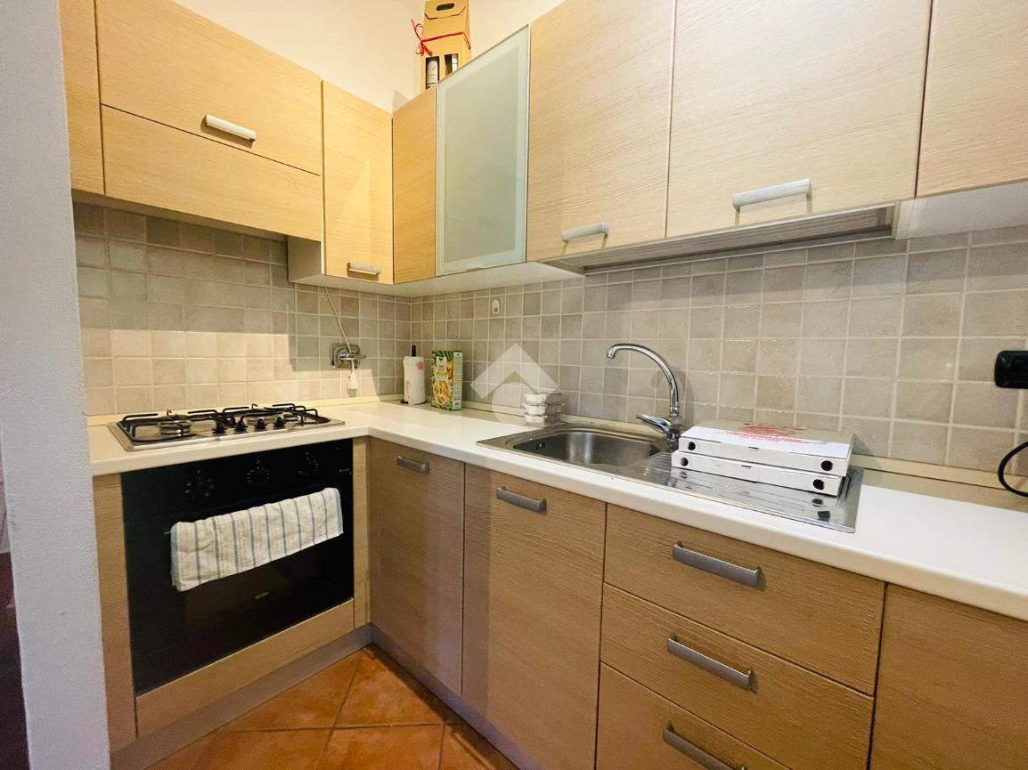 Alloggio al primo piano di ampia zona giorno con angolo cottura e accesso al balcone.