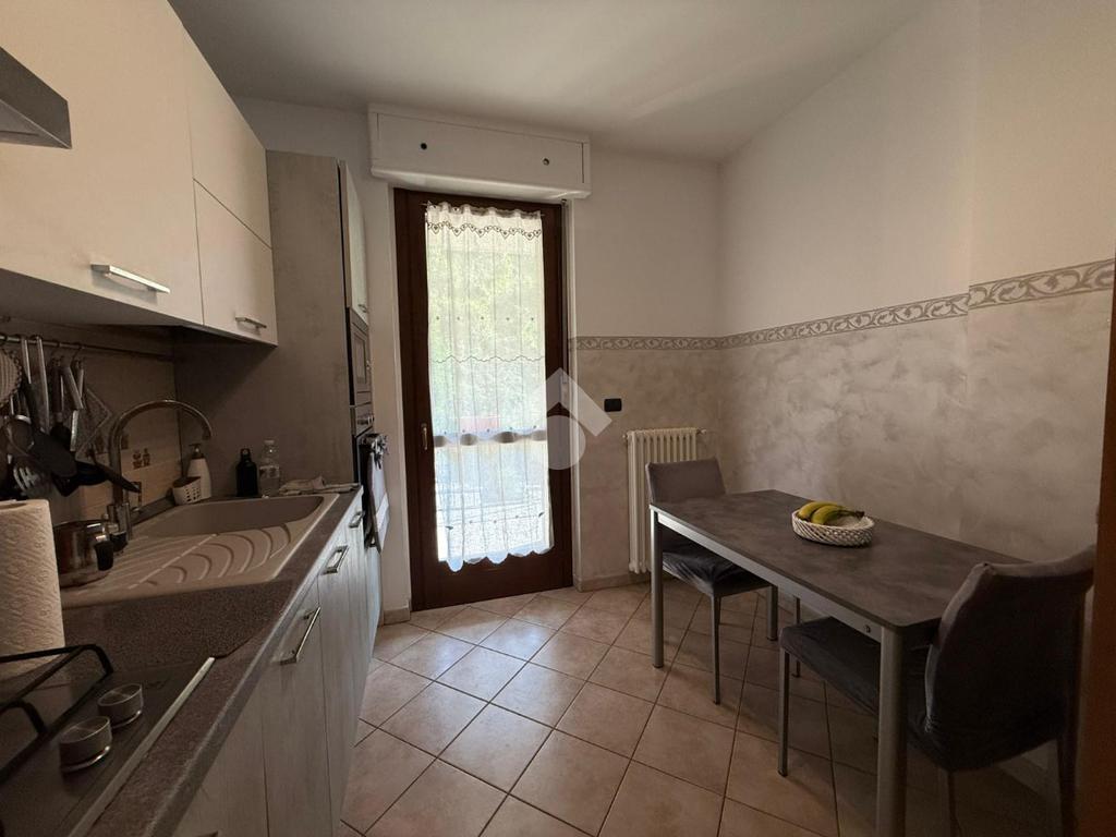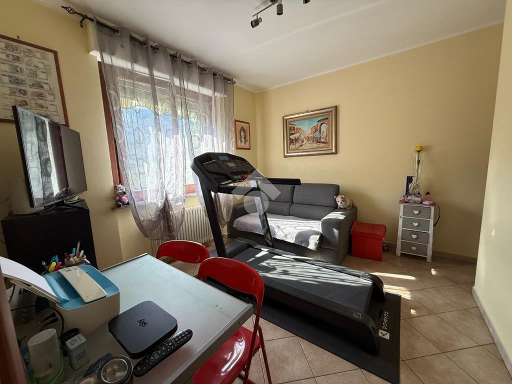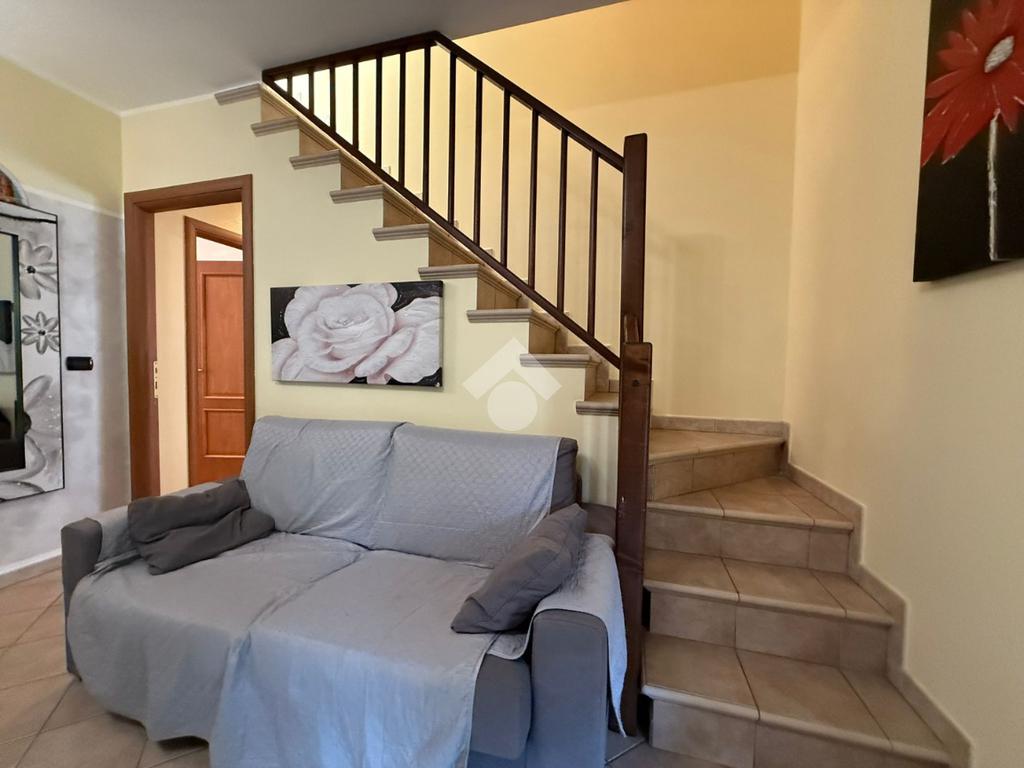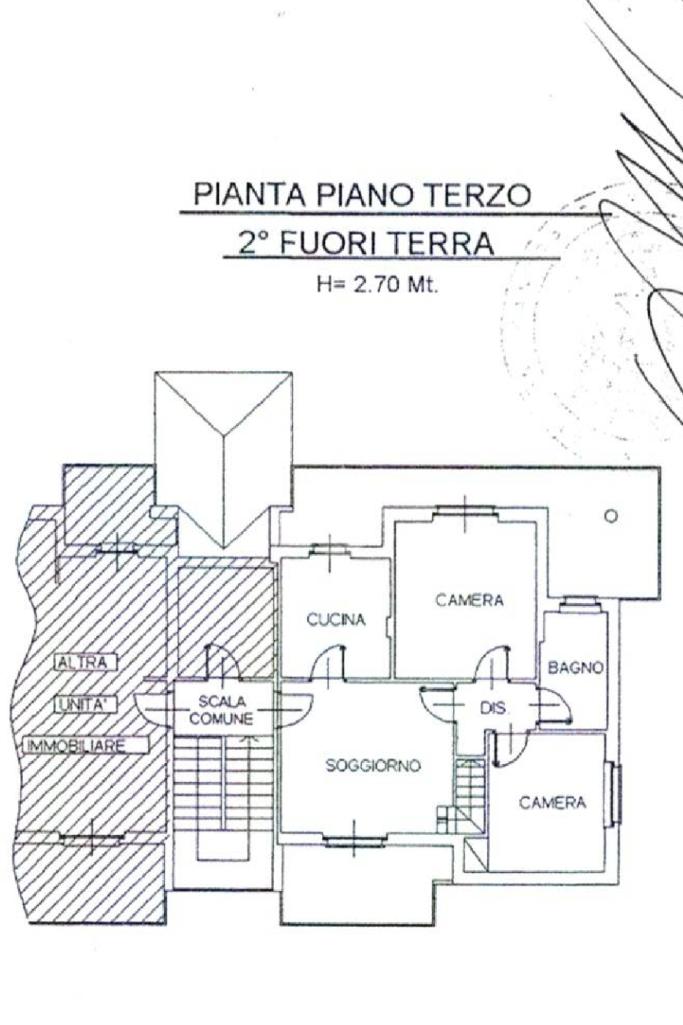 L'immobile è collocato al primo e ultimo piano con un ingresso living sul soggiorno e accesso al terrazzo. La cucina abitabile ha l'accesso al secondo balcone e al terrazzo.