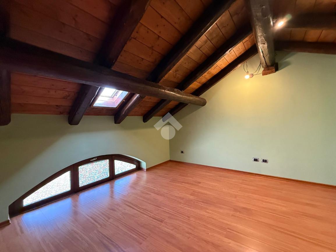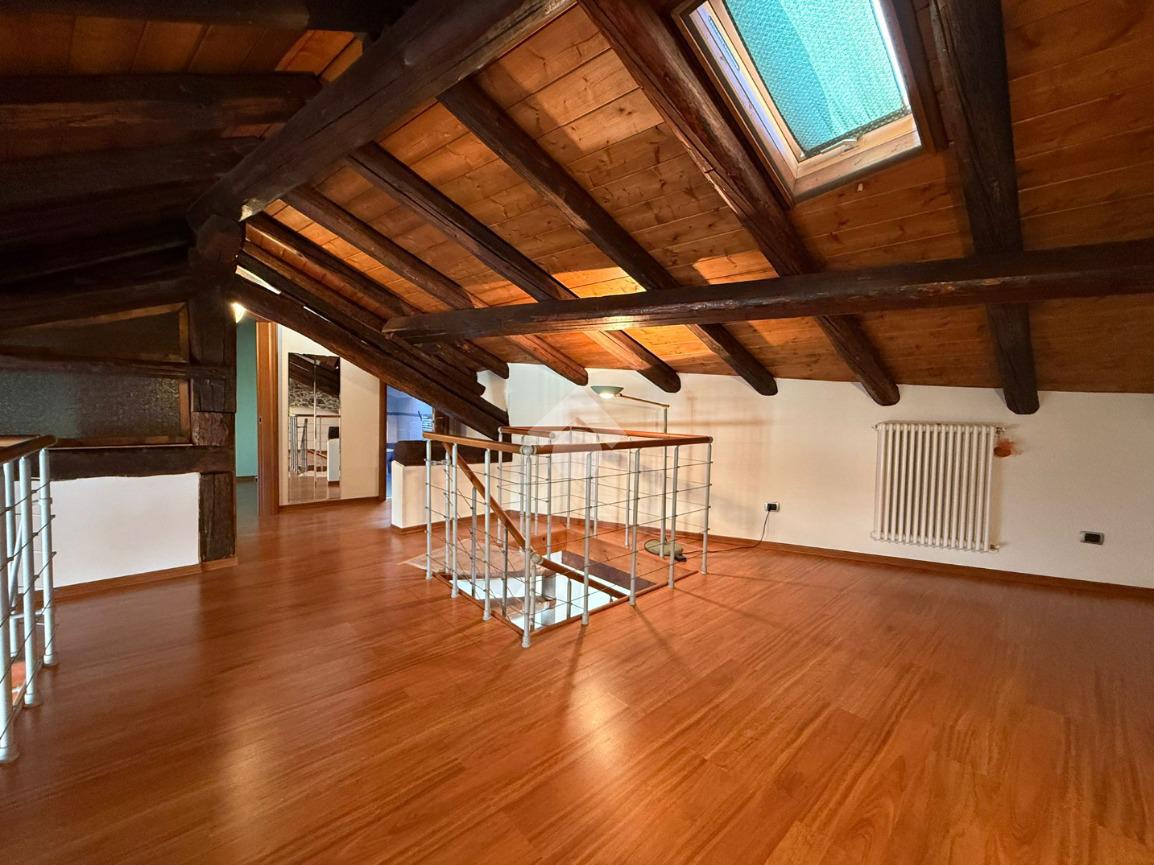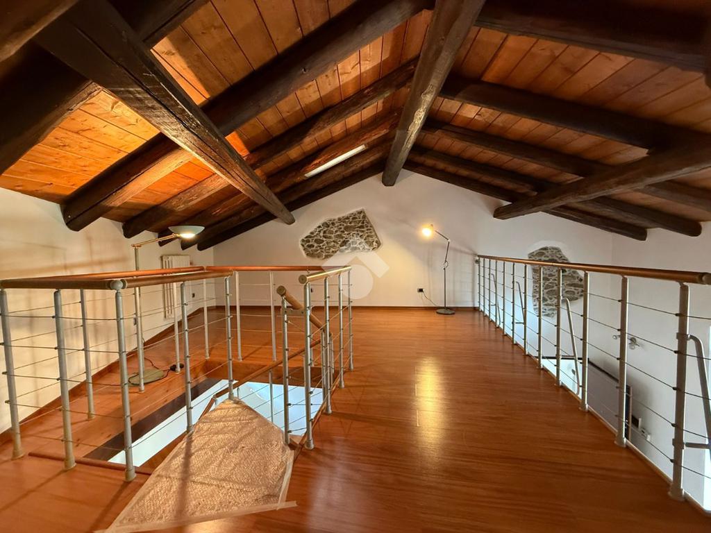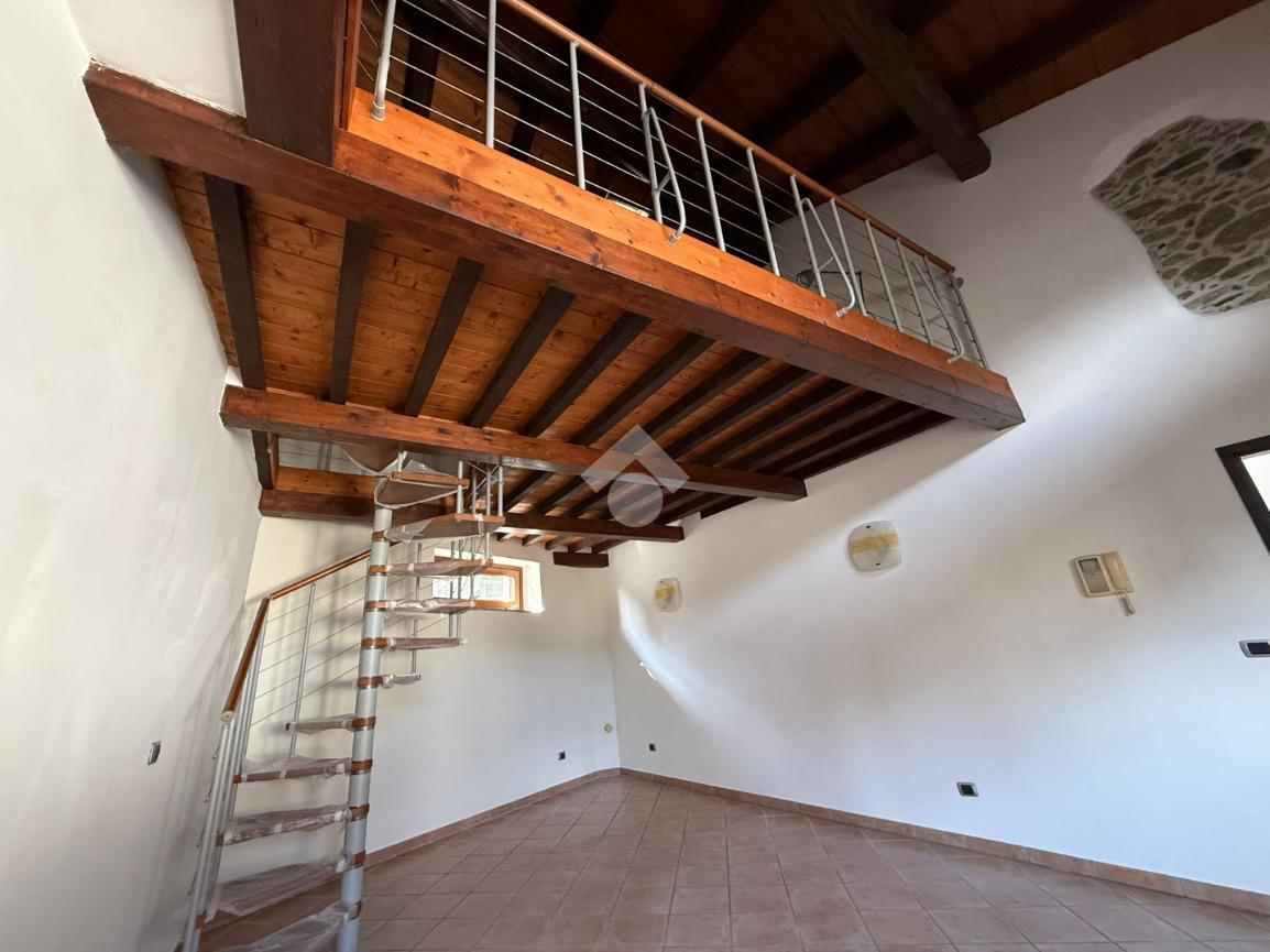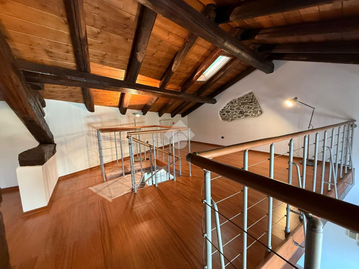 L'immobile è impreziosito dalle rifiniture rustiche con travi a vista e pietre di fiume in risalto sulle pareti.