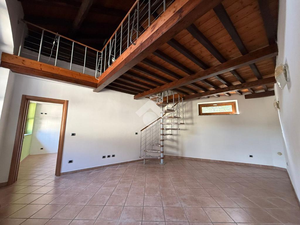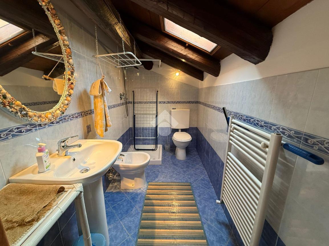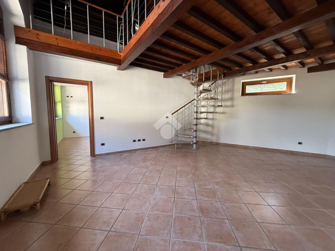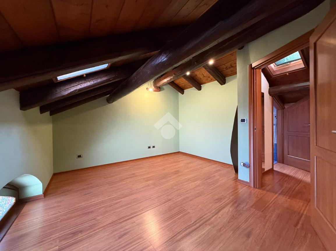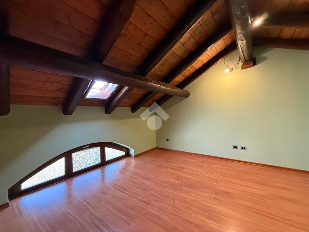 L'immobile è impreziosito dalle rifiniture rustiche con travi a vista e pietre di fiume in risalto sulle pareti.