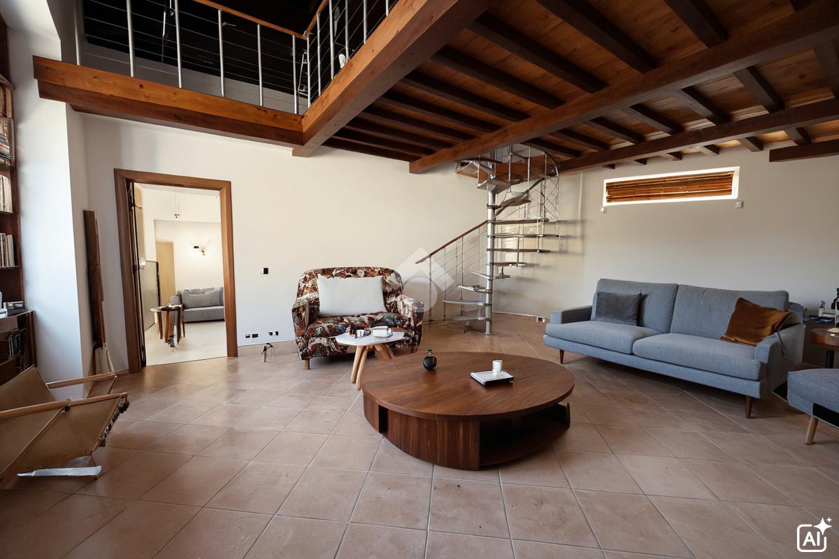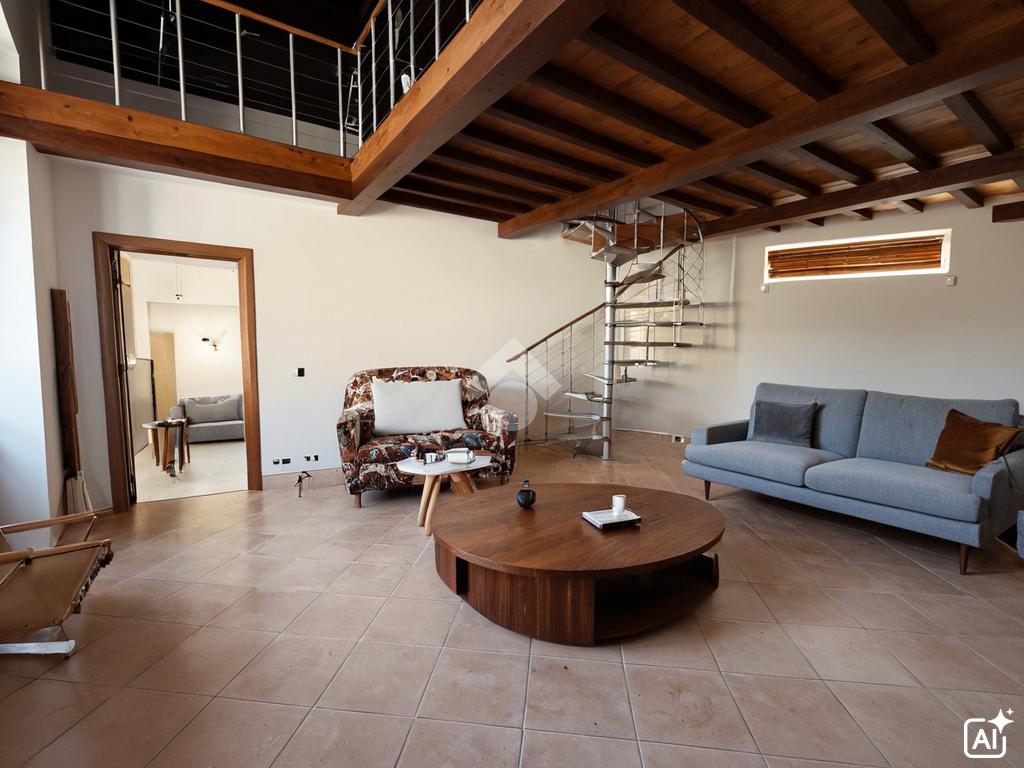 Al piano superiore, accessibile da una scala a chiocchiola in legno, iol soppalco uso studio o camera offre l'affaccio sulla zona giorno e sul giardino condominiale.