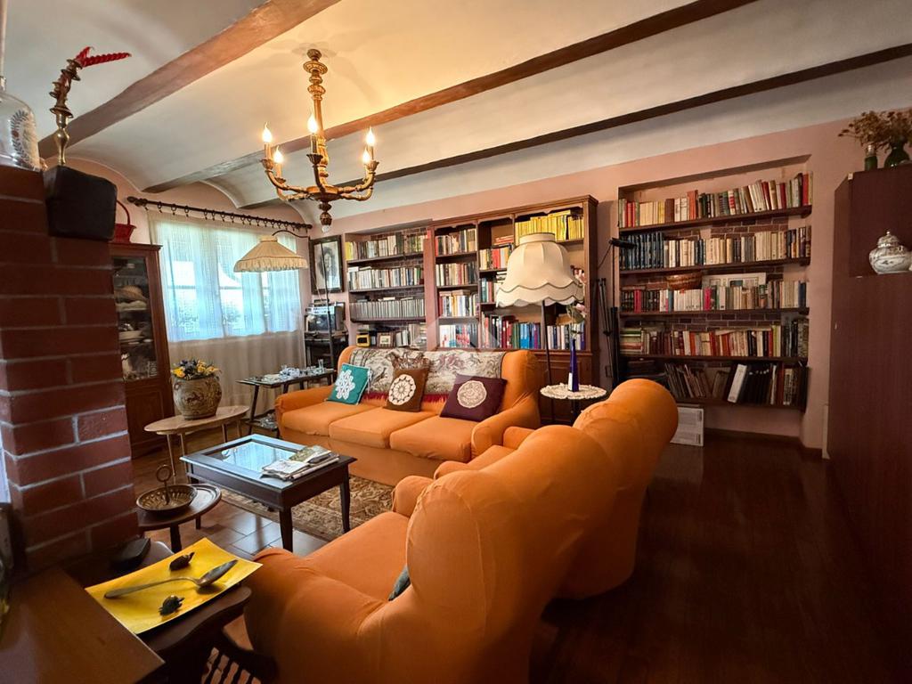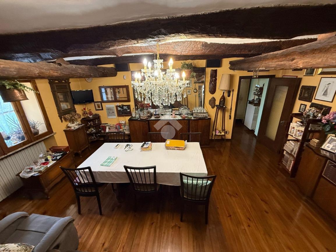 Al piano superiore, accessibile da un ingresso indipendente, ingresso sulla cucina abitabile, ampio soggiorno con soffitti con travi a vista, camera da letto e bagno.