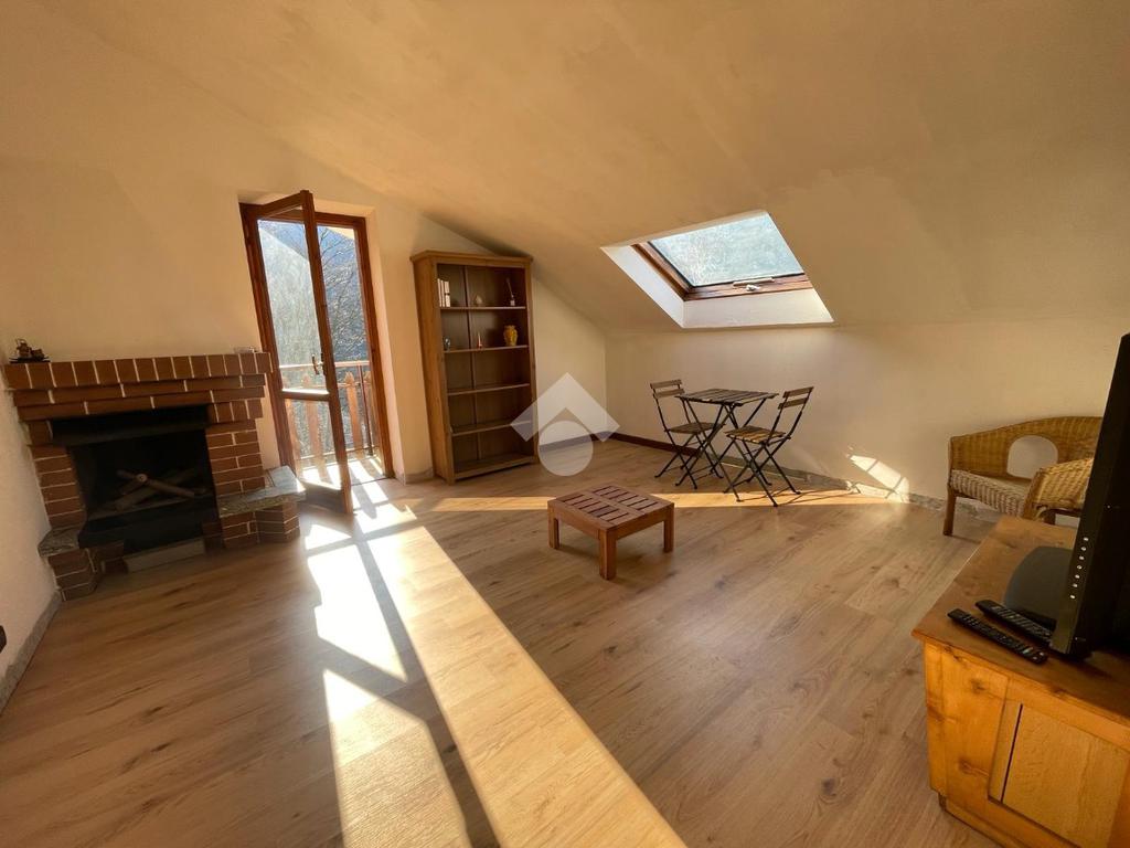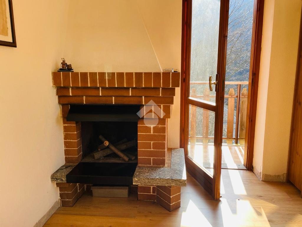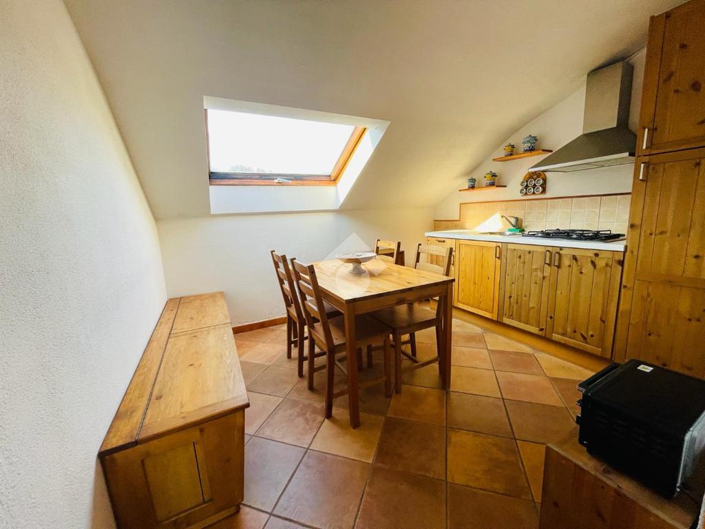 L'immobile è caratterizzato da un ingresso, cucina abitabile e salone con camino e accesso al balcone.