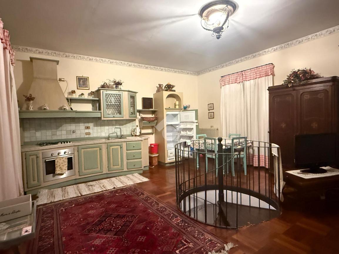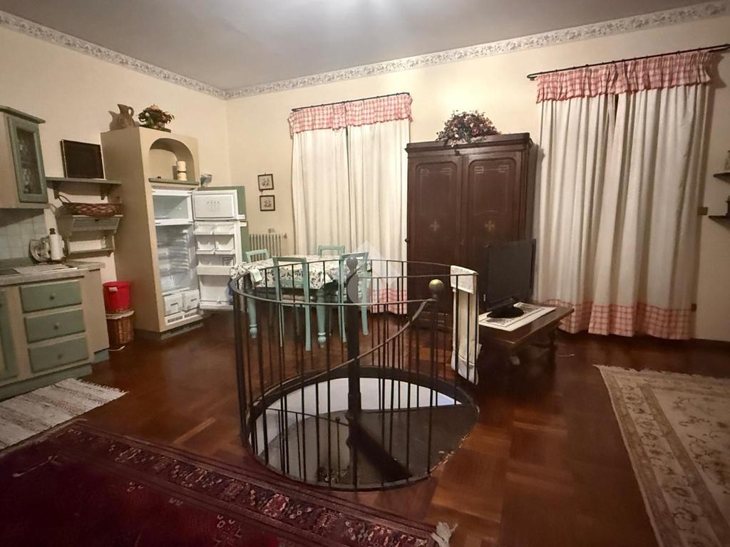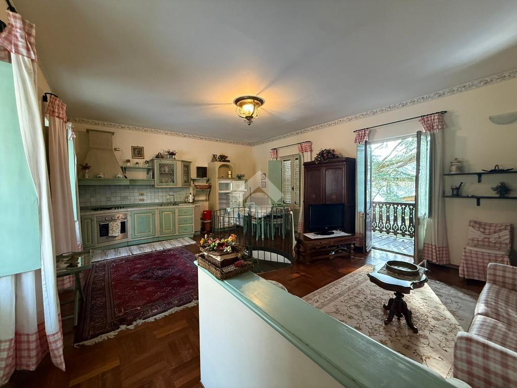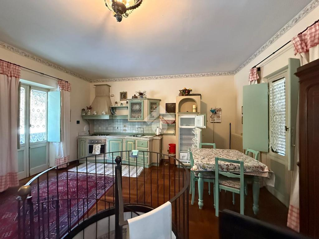 Da una comoda scala a chiocciola si accede all'abitazione che è caratterizzata da un soggiorno con angolo cottura con accesso al balcone.