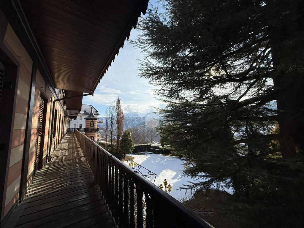 L'alloggio è collocato al primo piano con ampio balcone che percorre i tre lati della casa.